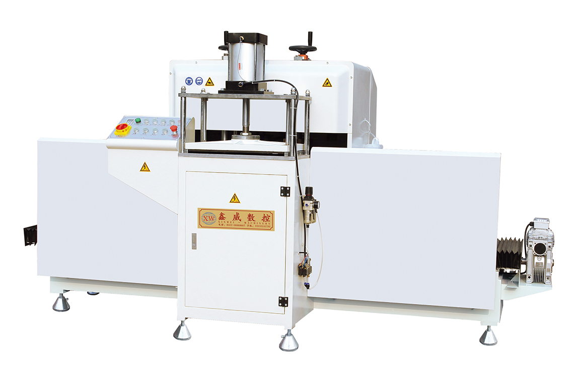 铝型材自动走刀式铣榫机具有型材固定,刀具移动,最适于较长幕墙型材的多数量、多批次的成型加工:六套组合刀具可根据用户需要组合成任意尺寸。其中两组刀具可在 180°范围内调节。一次走刀即可实现在型材端面铣削成所需要的榫口尺寸。