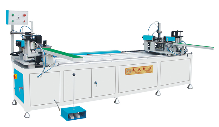 角码结构型铝门窗 90 角联接的专用设备。 特殊的动力传递方式,减少了对接缝的专用设备。 移动机头采用高精度导轨副,运动精度高,工作稳定性好。 双机头同步组角,一次完成两个窗角的组角。 组角刀上下,前后可调,适用于各种型材。